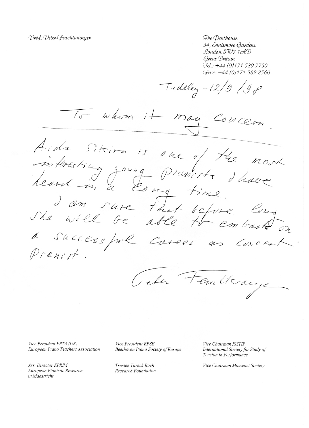 Beispielhaft differenzierte sie den Anschlag zwischen härtester Punktierung und grossartigem Legato und gestaltete auch die schärfsten Tempo- und Stimmungskontraste zwischen Lento und Presto nicht samtpfötig beschwichtigend, sondern mit unverhohlener Leidenschaft.“